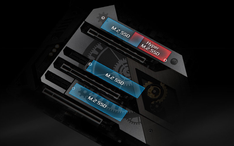 • 2 Ultra M.2 (PCIe Gen3x4 & SATA3), 1 Ultra M.2 (PCIe Gen3x4)